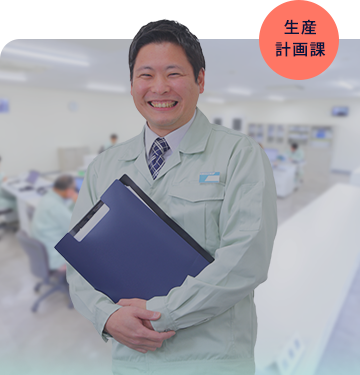 - A生産計画課はとても守備範囲が広く、様々な情報や問題について対応するため思うように仕事が進みません。しかし、計画通りに工場全体をコントロールでき、製品づくりが進んだ時は大きな達成感を味わえます。