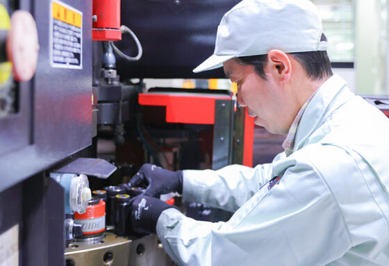 専用機械を使い、金属板を「切る・曲げる・穴をあける・溶接する」加工を施します。