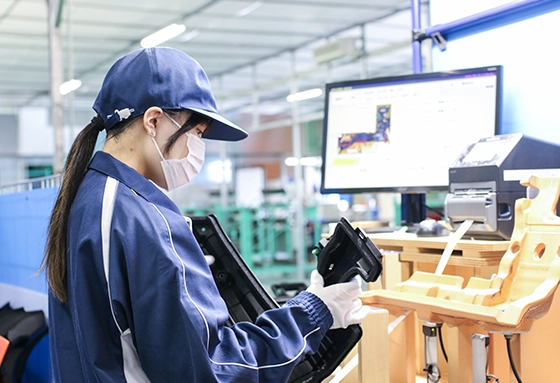 射出成形機を使用して、自動車の内装部品・外装部品・構造部品などを製造します。